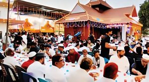 ക്ഷേത്രമുറ്റത്ത് സമൂഹ നോമ്പുതുറയ്ക്ക് വേദിയൊരുക്കി അരവത്ത് മട്ടെങ്ങാനം കഴകം പൂബാണംകുഴി ക്ഷേത്രം. വെള്ളിയാഴ്ച പുനഃപ്രതിഷ്ഠാചടങ്ങ് നടക്കുന്നത് മുൻപേ, വ്യാഴാഴ്ച വൈകീട്ടാണ് പൂബാണം യു.എ.ഇ. കമ്മിറ്റിയുടെ മുൻകൈയിൽ നോമ്പുതുറയ്ക്ക് വേദിയായത്. സമീപ മസ്ജിദുകളിൽ 6.39-ന് മഗ്രിബ് ബാങ്ക് വിളി മുഴങ്ങിയപ്പോൾ കാരക്കയും നാരങ്ങ സർബത്തും കഴിച്ച് നോമ്പുതുറക്കാൻ നൂറുകണക്കിന് വിശ്വാസികൾ ക്ഷേത്രമുറ്റത്ത് ഒത്തുചേർന്നു.